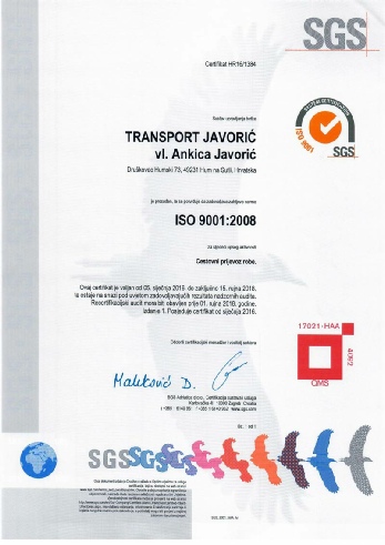 Transport Javorić vl. Ankica Javorić će stalno osiguravati svojim kupcima kvalitetan, i cjenovno pogodnu uslugu, te tako izgraditi međusobno povjerenje i partnerski odnos za budućnost.